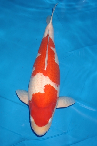 写真の鯉はハウス池に展示している上物(当才)となっております。ゆえに多少お値段も張りますが・・・。(汗)
