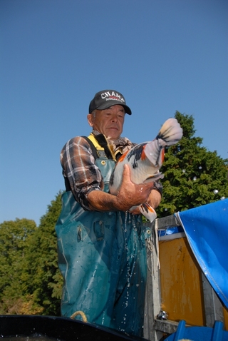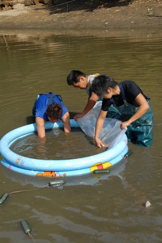 同じく水槽車に鯉を移していく僕(小西 誠)!