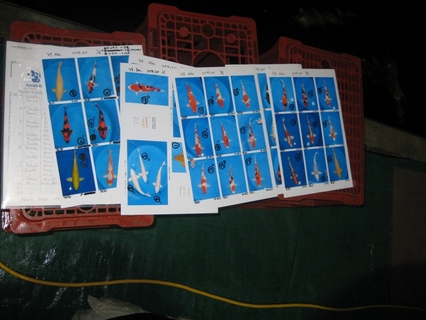 出荷する鯉のリストです! リストをチェックしながら、鯉を掬っていきます。