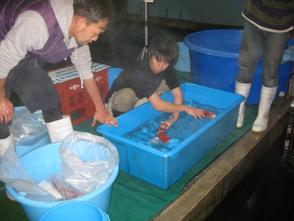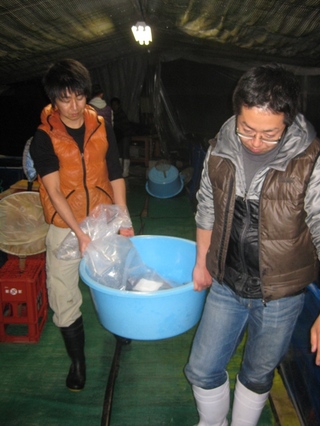 1尾1尾、状態をチェックしながら袋に入れていきます!