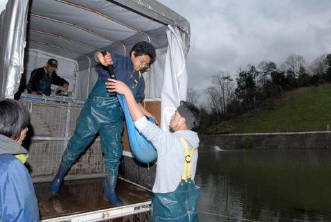 ※立て鯉(将来性のある鯉)を野池に放すこと。