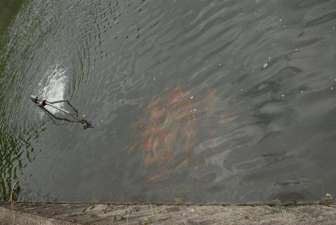 どうやら自身の好きな鯉をタライに掬っているようです☆