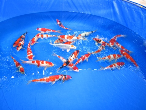 プールへ取り上げた鯉をドンドン運んでいきます!!